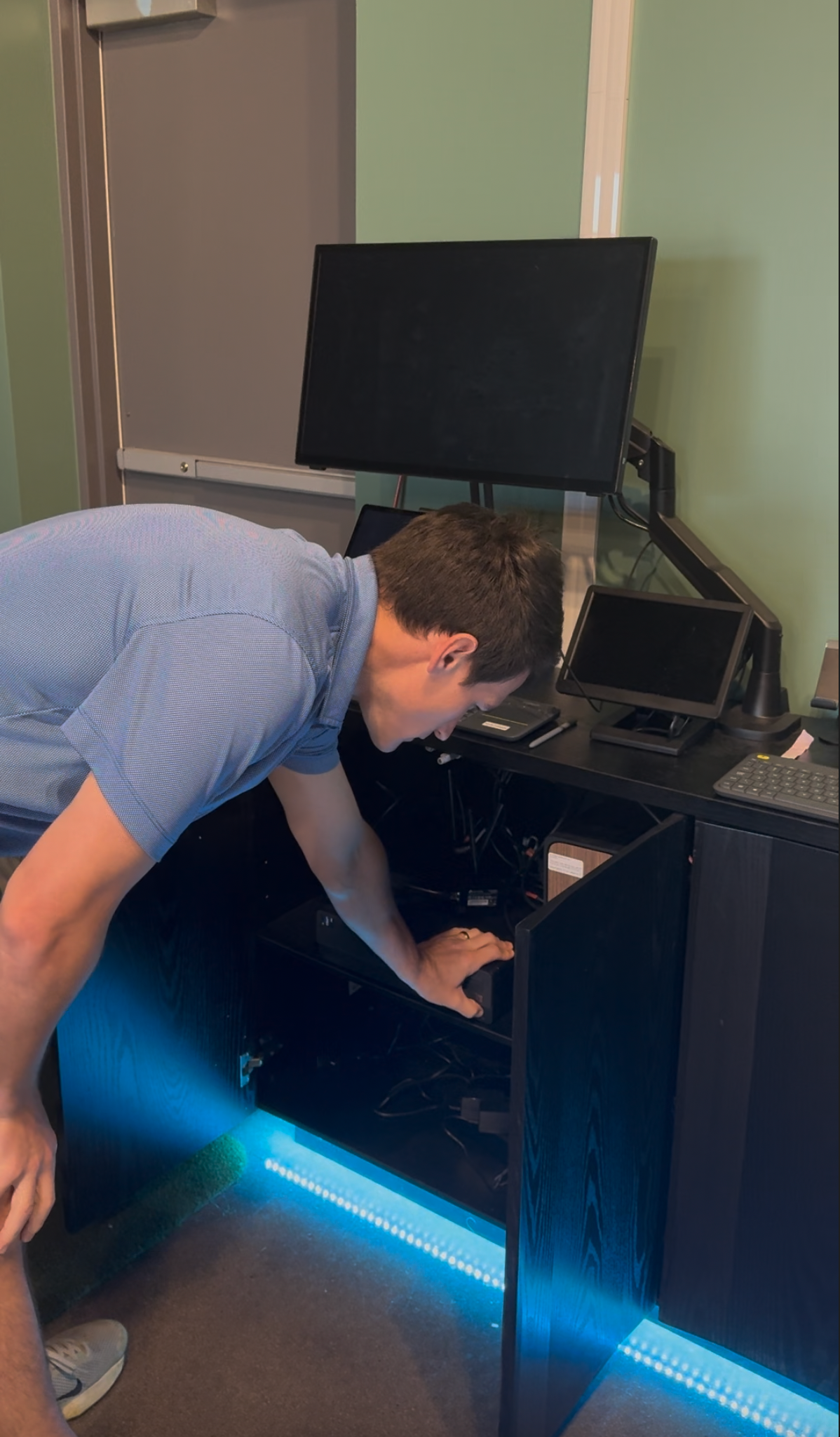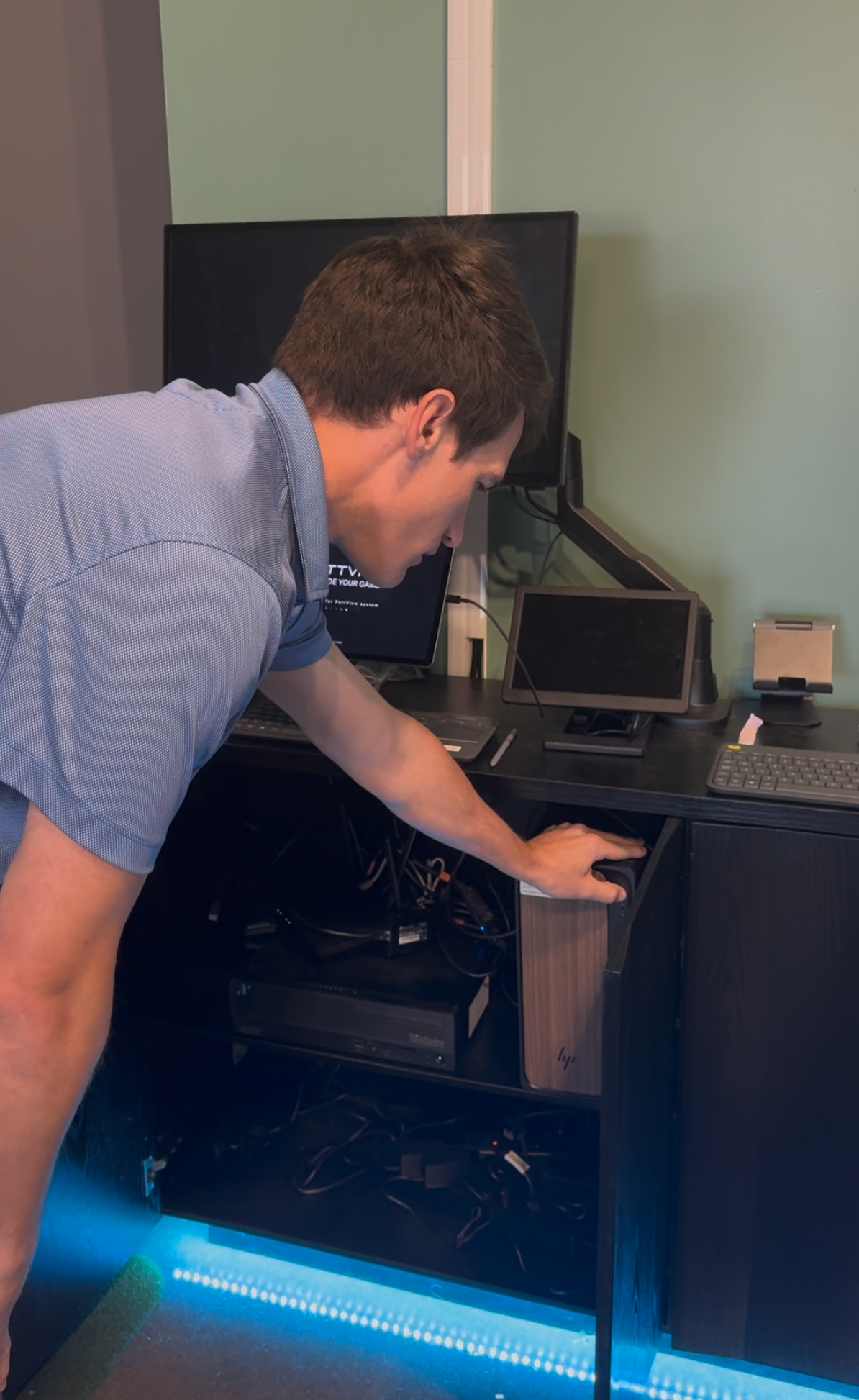 - Power on both computers - the brown computer is Foresight, the black computer is PuttView