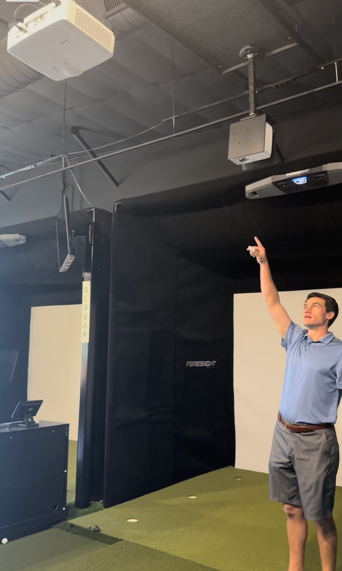 - PuttView should automatically shut down the projector, but if it does not, use the small white remote to do so