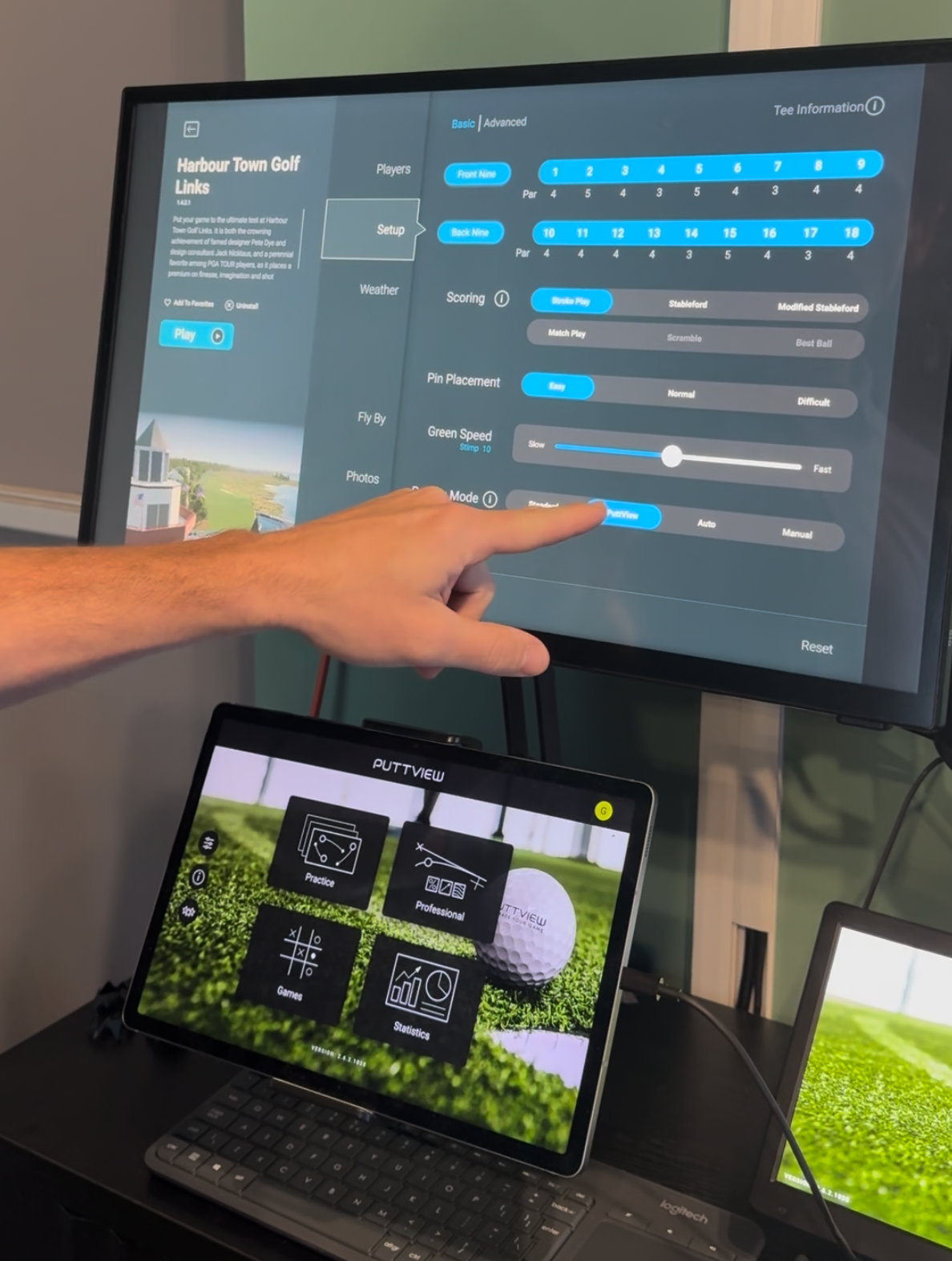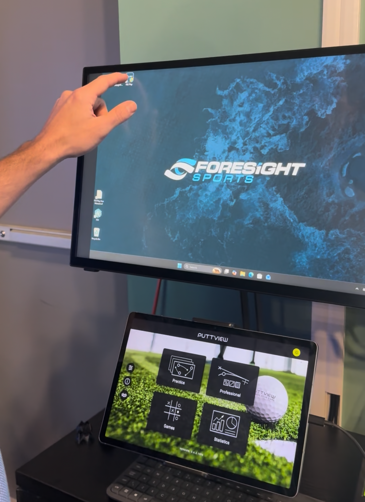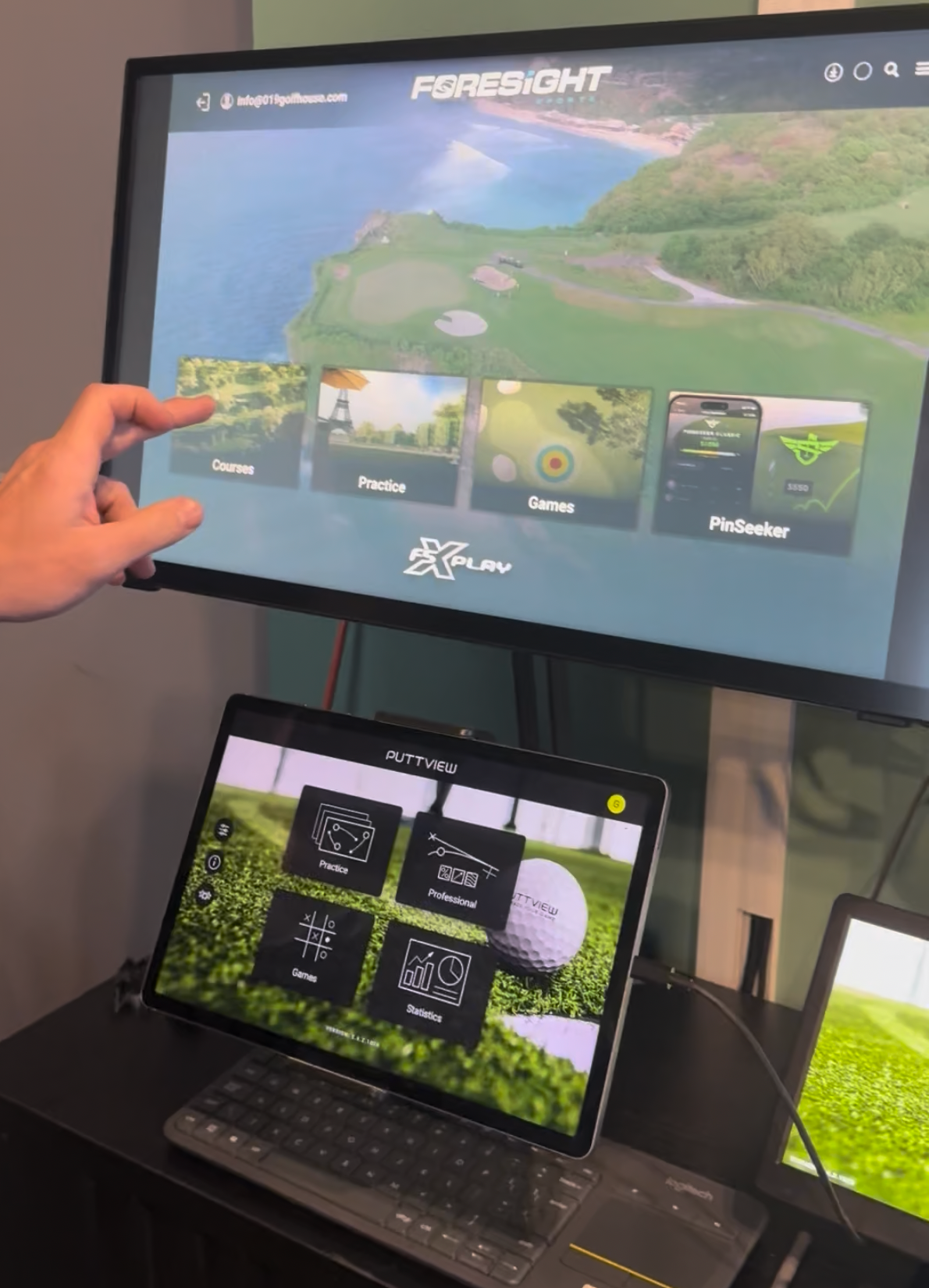 - The large touchscreen controls the foresight software, the small tablet controls PuttView gameplay, the small monitor controls PuttView